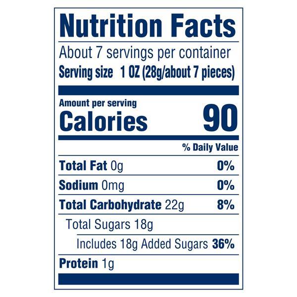 Corn Syrup, Sugar, Water, Modified Corn Starch, Gelatin, Less Than 2% Of: Citric Acid, Natural and Artificial Flavors, Mineral Oil, Colors (Red 40, Yellow 5, Blue 1), Carnauba Wax.